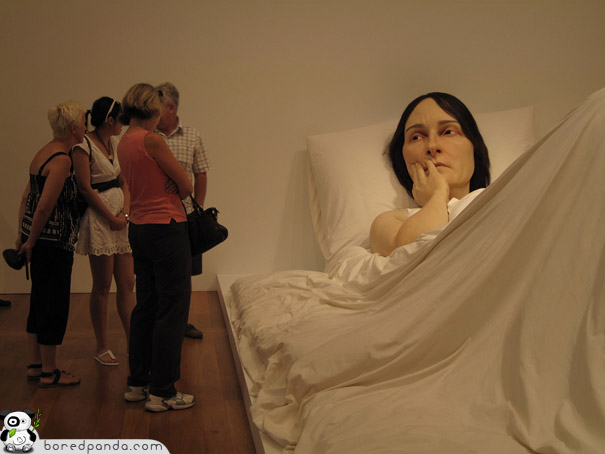 Hyper-realist sculptor Ron Mueck portrays key stages in life from birth to death in this series of sculptures. He only uses silicon and human hair to create these life like monuments which interact with people like no statue has ever before.